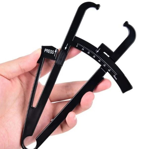 Adipômetro para medição da percentagem de gordura corporal. Produto desenvolvido com material em ABS e ação auto impulsionadora. Mede em polegadas e milímetros.