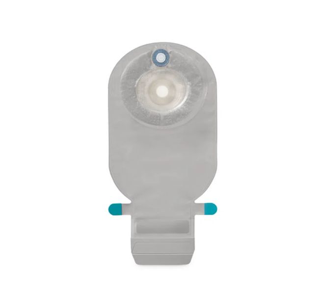 O aro de 70 mm garante compatibilidade com bases adesivas da linha SenSura Mio. O botão de travamento turquesa oferece identificação visual rápida e aumenta a segurança durante o uso. Seu formato ondulado possibilita maior flexibilidade e melhor ajuste ao abdômen, acompanhando os movimentos naturais do corpo ao longo do dia.
