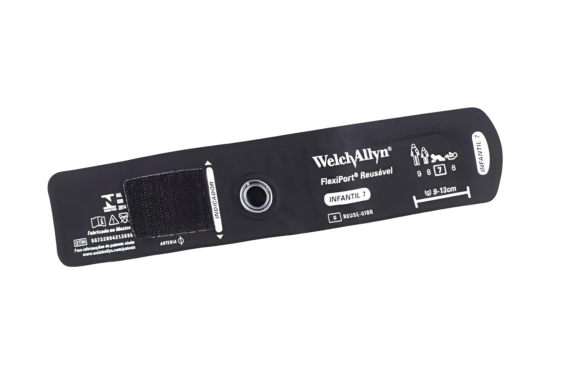 A Braçadeira FlexiPort 7 Infantil Pequeno Welch Allyn é a escolha ideal para médicos, enfermeiros e clínicas pediátricas que buscam precisão, conforto e durabilidade na aferição da pressão arterial infantil.