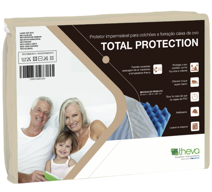 O Protetor Impermeável Total Protection é projetado para ser fácil de colocar e remover do colchão, geralmente ajustando-se como um lençol ou possuindo uma superfície elástica que permite fixá-lo firmemente ao redor do colchão.