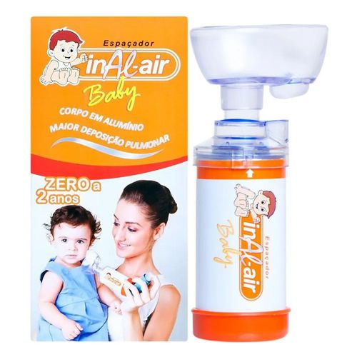 Espaçador Inal-Air Baby de 0-2 Anos c/ Máscara Para Inalação - Desenvolvido para bebês e crianças com até 2 anos de idade, que necessitam se medicar via inalação - Possui tubo em alumínio, para maior aproveitamento da medicação - Com exclusivo encaixe em traqueostomia - Para usar com bombinhas.