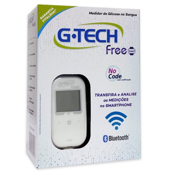 O Medidor de Glicose G-TECH FREE SMART, é um aparelho que vem para trazer facilidade em controle e acompanhamento dos níveis de glicose através da sua conexão Bluetooth e do aplicativo para celulares e tablets, G-TECH App, permite a transmissão das medições realizadas no medidor para os dispositivos móveis, criando um registro mais completo dos níveis de glicose no sangue. Além da função Bluetooth, o medidor G-TECH FREE SMART, possui luzes indicativas de hipo e hiperglicemia, permitindo que o usuário tenha uma interpretação mais fácil dos resultados.