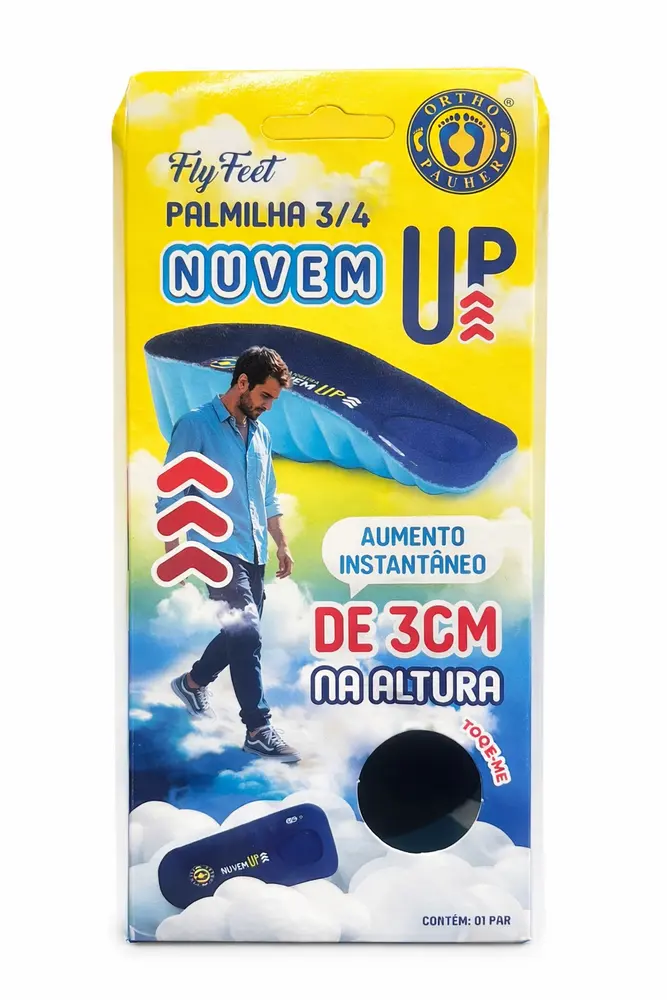 A Palmilha Ortopédica ¾ Fly Feet Nuvem UP AC042 foi desenvolvida para oferecer máximo conforto, absorção de impacto e suporte biomecânico ao caminhar. Produzida com a tecnologia exclusiva PU Soft Cloud, proporciona uma pisada mais macia e estável, contribuindo para o alívio de dores e melhoria da mobilidade no dia a dia.