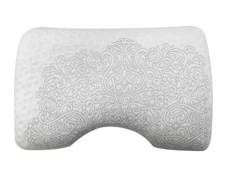 Anatômico dos dois lados: formato linear para apoio da cabeça e pescoço de um lado, que favorece o sono em outras posições e do outro lado possui um formato exclusivo para encaixe do ombro, que favorece às pessoas que preferem dormir de lado;